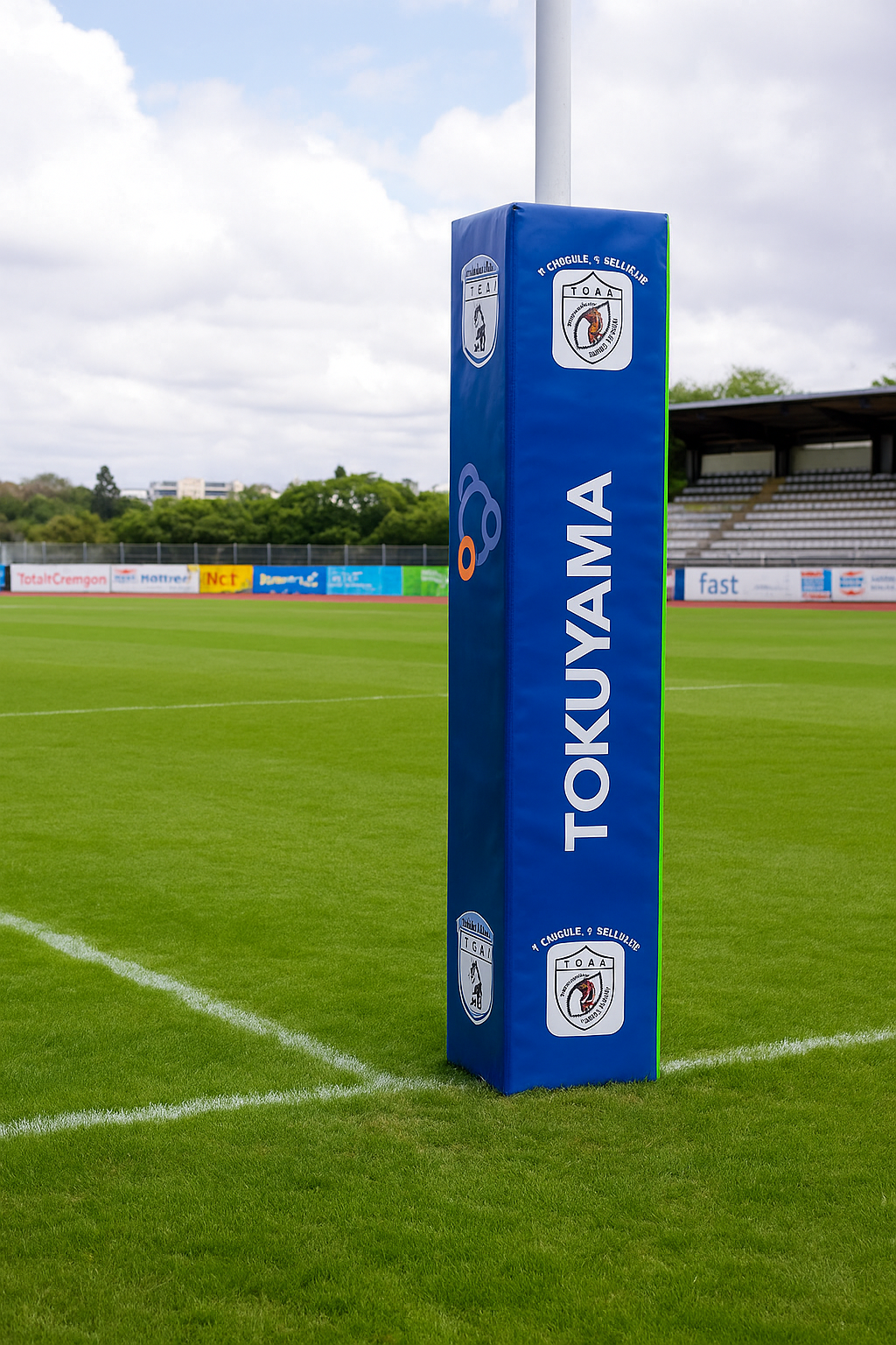 Le kit de 4 protections de poteaux KOLOSS-RUGBY est conçu pour assurer la sécurité des joueurs tout en offrant une surface de communication personnalisable aux couleurs de votre club ou de vos partenaires.
